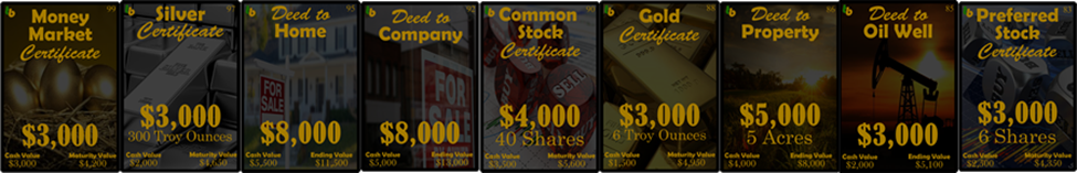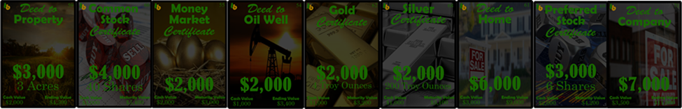 This is the Value of the Investment if you need to sell it before the end of the game. (This Value is used to determine your Net Worth) TopMaturity or End Values: