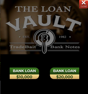 A $10,000 or $20,000 (Discretionary) Bank Loan can be taken out at any time. (Even if it’s not your turn) Click the Loan icon to open the Loan Vault to take out a Bank Loan or to see how many Loans you already have outstanding.
